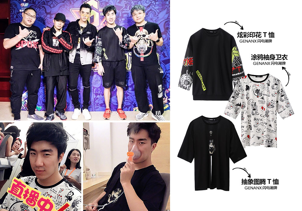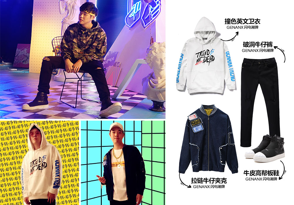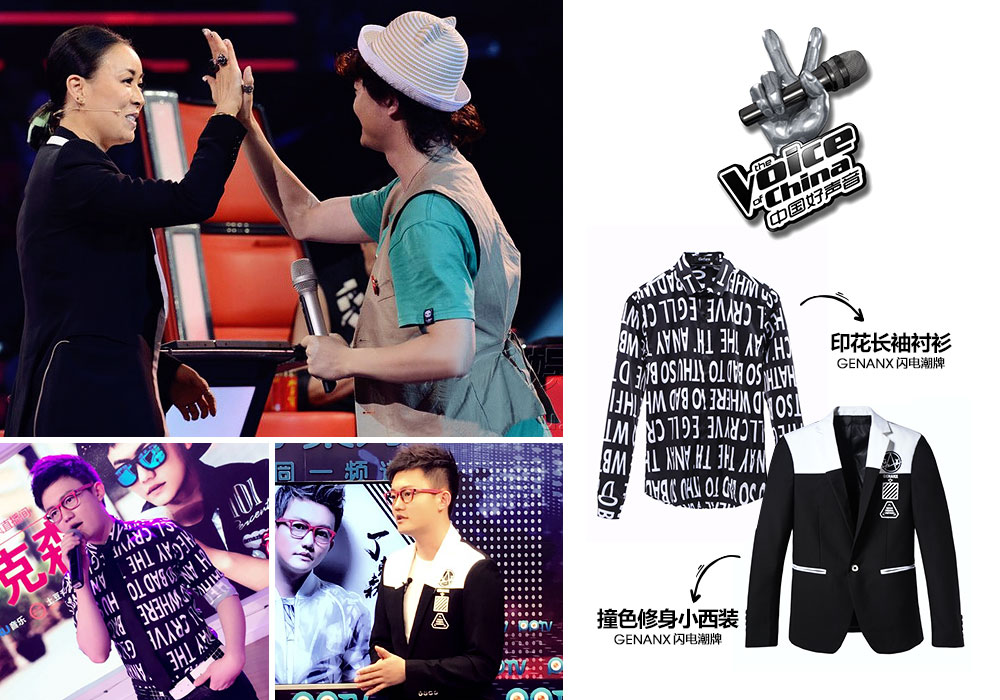 此外,另一档选秀节目《中国好声音》《中国新歌声》参赛选手李瑞轩、张卓含威、莫海婧、丁克森潮味相投,都爱这男女均可穿的GENANX闪电潮牌。