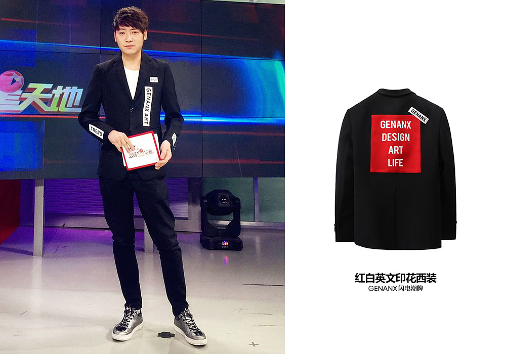 浙江卫视当家主持人池长庚常常将GENANX闪电潮牌上身,对其钟爱有加。