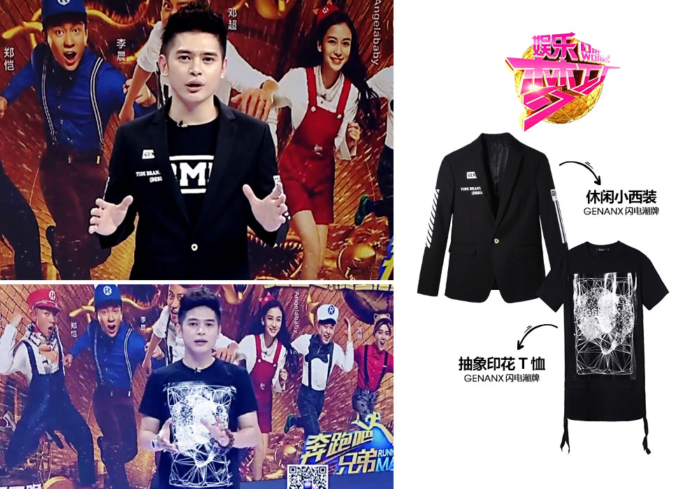 马松身穿GENANX闪电潮牌主持吴亦凡的生日会;东方卫视当家主持陈立青身穿GENANX闪电潮牌主持《娱乐新天地》。