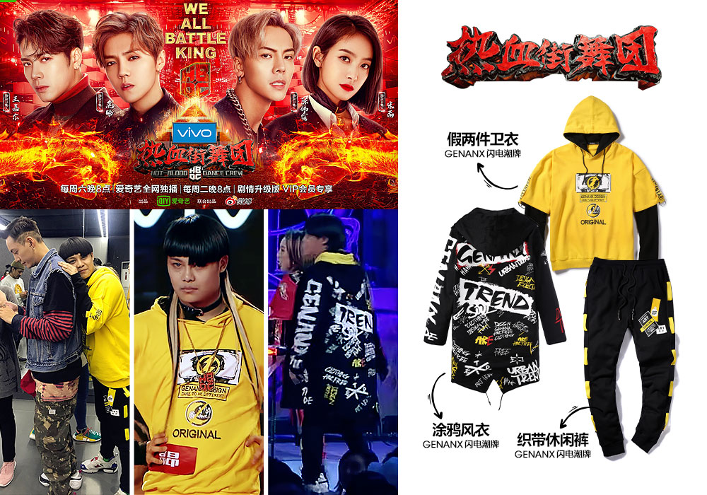 不仅仅是电影,就连最近热播的《热血狂篮》《归去来》《最强男神》等电视剧,剧中好多演员穿的服装都是来自GENANX闪电潮牌。